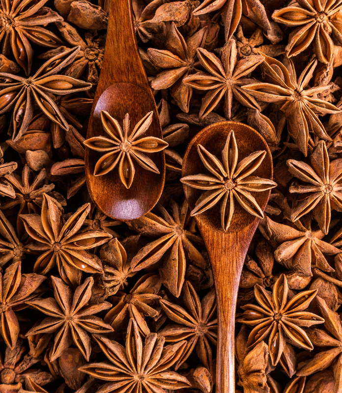 Star anise seeds have a licorice flavor, enhancing both sweet and savory dishes.